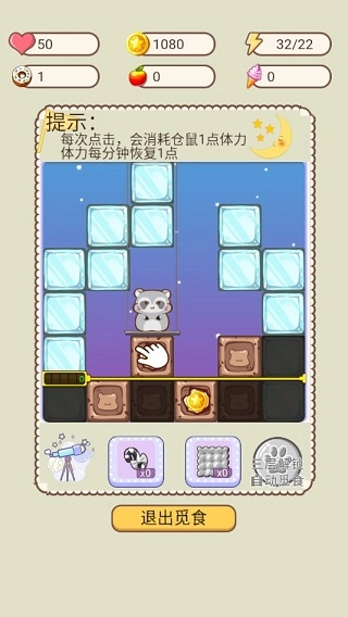 4、觅食的玩法十分简单,每次点击都会消耗仓鼠1点体力,体力每分钟能恢复1点。