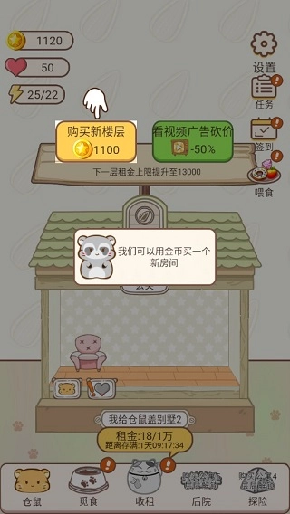 仓鼠别墅拔地而起,不断加盖新楼层,还能添置温馨、可爱或是搞怪风格的仓鼠家具。