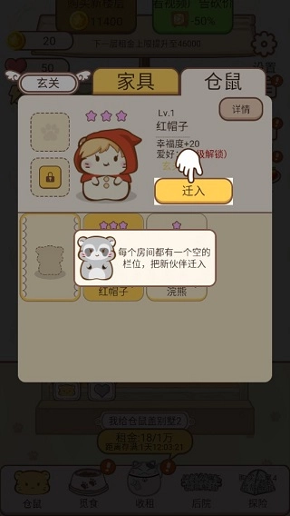 1、在这里玩家将跟随仓鼠管家,打造全国最棒的公寓!