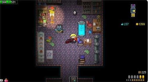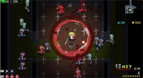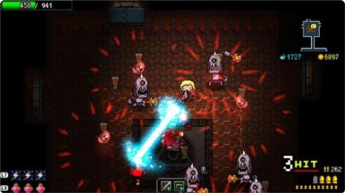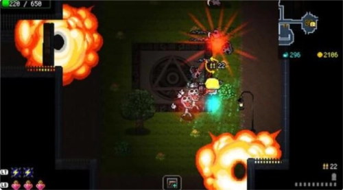 整体节奏比较快,玩起来挺爽快的。玩法和传统地牢类游戏,尤其是同类型带roguelike元素的2D射击游戏差不多。所有关卡的地图都是随机生成的,角色能携带近战和远程两种武器,玩家在游戏过程中可以通过收集怪物掉落以及开宝箱得到的宝物来提升角色属性。