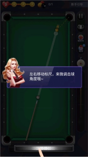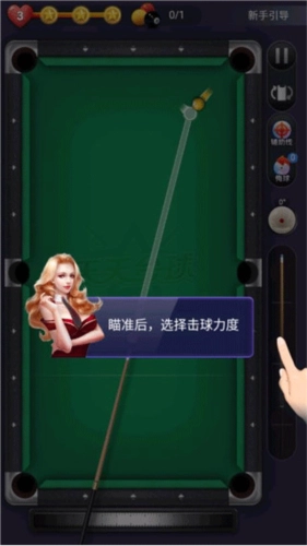 2、需通过左右移动标尺来微调球杆的击球角度,点击即可发射球杆击打台球,将目标球打入球袋就能获得分数;