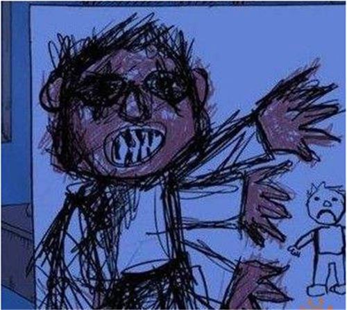 3、当孩子彻底拒绝与你沟通时,会通过一些方式传递信息,比如画一幅画,画里有个样貌丑陋、长着三只手的男人试图抓住小孩,这时就能意识到是老师对孩子做了可怕的事。