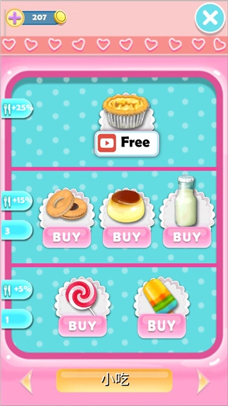 5、点击加号,挑选女朋友想吃的食物,把美食拖到女友面前,以此增进和女友的感情;