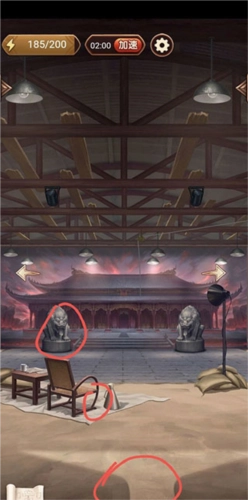 1、导演椅底下藏着一张容易被忽略的碎纸条,要是一次点不到可以多尝试几次;石狮子点击后会出现线索,地上的痕迹也别漏掉。