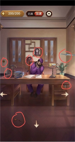 1、首先是人身上的线索,这些线索都用红圈做了标注,借助放大镜就能找到受伤相关的线索。