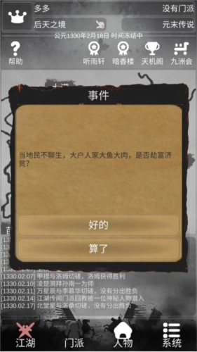 你或许体验过各类题材的经营模拟游戏,但以武侠为背景的开放式模拟玩法,你尝试过吗?今天为各位玩家介绍一款风格独特的文字类游戏——《炙热江湖》。游戏中包含丰富精彩的剧情,你可以创建自己的门派,也能选择依附朝廷势力,最终目标是称霸整个武林。
