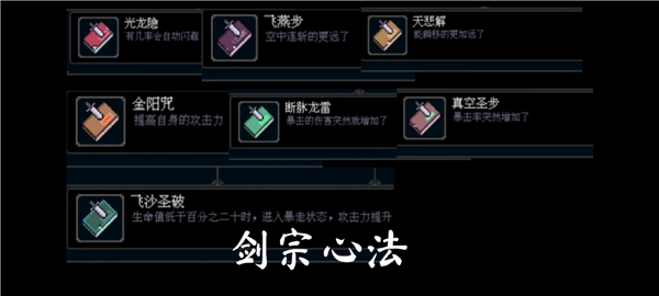 心法:鬼道奇阵图,剑宗断脉龙雷、真空圣步、飞沙圣破、金阳咒,气宗焚天禁法