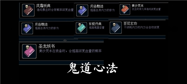 心法:鬼道黄沙灵本、鬼道风霜妖典、鬼道圣龙妖书、鬼道奇阵图