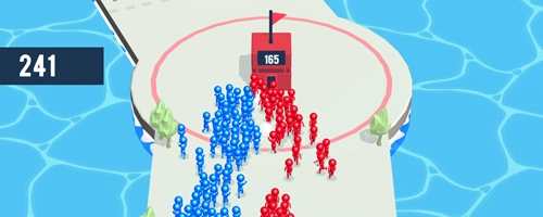 《炮弹兵冲冲冲》是一款魔性又有趣的休闲闯关竞技游戏!在游戏里,我们能操控大量士兵,助力自己赢得战斗的最终胜利——看着这么多士兵为我们冲锋陷阵,还有什么理由不全力以赴呢?玩家可以操控炮台,利用手中的炮台发射更多士兵;士兵穿过倍数门后数量会成倍增长,按照倍数门上的数字获得对应数量的炮兵。瞄准点,尽量获取更多炮兵,这样就能在人数上占据优势!