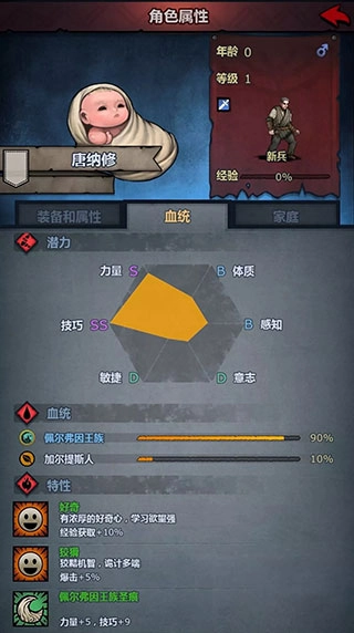 自带勇敢特性,六维属性尚可,弓箭和盾牌都能使用。考虑到主线难度其实不算大,我决定先转骑兵,二转选择勇士。就目前体验来看,勇士在二转职业里算是相当强力的,既不怕被集火,单体作战能力也很突出。