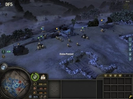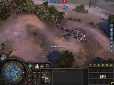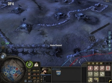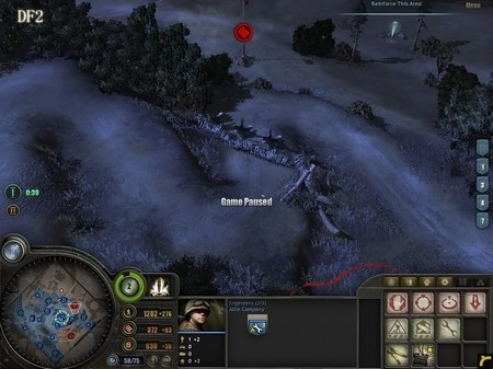 要是你上一关还剩下不少兵力,那可太好了,毕竟增援部队是额外的人口,你会发现自己的部队数量已经远远超出了人口上限。高地中央还有一队来历不明的RM,让这队去后山加固工事,把DF4防区的工事也再完善一下,最好能通过坦克障碍让对方的坦克尽可能远离你的地堡。