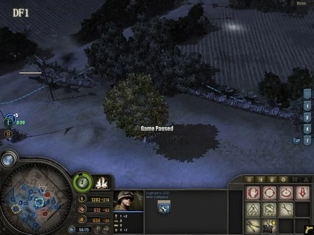 一开始,兵力配置为2队RM、两挺MG、两队工兵,还有一些零散部署在高地周边的RM。首先无需急于行动,先按“F1”键,建造两队工兵,并将旗帜插在高地的东南方向。接着快速调配兵力,若操作速度较慢,可按下暂停键,逐个分配任务:将北面山脚的2组零散RM调去占领北面的弹药点和人力点;东南方向山脚的两个RM负责占领东南的人力点和弹药点;抽调山顶上的一队RM,按住Shift键连续占领南向小镇里的油料点和弹药点,最后依次右键点击山顶上的两门57mm炮。山顶上的两队工兵,其中一队前往DF1——这是你的第一道防线,务必确保其质量,具体设置方法如图所示。