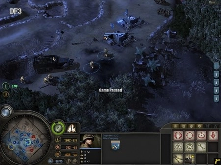 为何要使用半履带车?它的作用有两个:一是歼灭敌方步兵,二是补充己方兵力(估计很多人不清楚靠近它时按下“R”键有什么效果)。狙击手需驻守DF5区域,DF5是防御的核心要点,这里将成为阻挡德军进攻的关键力量。所有重机枪都要部署在此,把刚才由RM部队缴获的两门57mm火炮安置到这里,同时将解救出来的游骑兵部队和完成任务返回的RM部队全部部署到该区域。大约5分钟后,德军会发起突袭,但他们的主要兵力集中在西侧,暂时无需理会,后山的工兵继续建造防御工事即可。经验值很快就能积累到1点,建议优先升级步兵防御工事,这样步兵就可以参与建造防御设施了。随后调动DF5防区内达到3级的RM部队,顶着零星的炮火(这就是选择RM而非工兵的原因),在DF5的盘山小道上修建防御工事,彻底切断德军上山的路径。
