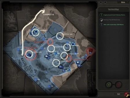 刚开始可能会遇到不太强的抵抗,用你的M10解决掉之后,RM再放开手脚行动!要是高地防守得比较稳固,那就可以派一队工兵过来建造两个地堡。建立好你的防御阵线后,胜利也就离你不远了……