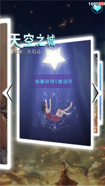 2、玩家首次登录时将获得5个复活币,之后可选择自己喜欢的歌曲开启游戏。