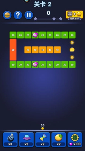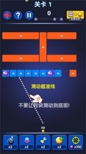 弹球达人是一款让人欲罢不能且富有挑战的休闲益智游戏。它的核心玩法备受玩家青睐,结合了经典的打砖块元素,为玩家带来全新的娱乐感受。在游戏里,玩家要精准操控屏幕下方的圆球,通过精确瞄准,把圆球弹射到屏幕中央带有数字的方块上。每击中一次方块,方块上的数字就会相应减少,直到变为零,方块也就跟着消失了。