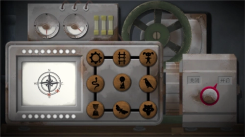 仔细观察后能发现,火车上的那台机器缺少了一个按钮,按道理应该先去寻找这个按钮。不过这个解谜的顺序并没有太大的影响,所以我们就按照场景从左到右的顺序依次来解开谜题。