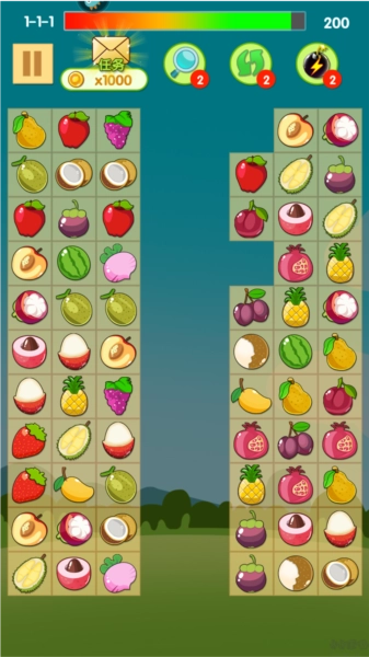 1、经典的连连看玩法,玩家只需把相同的水果相连就能完成消除。