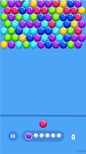2、泡泡龙模式中,玩家需向上发射小球,只要遇到相同颜色的小球就能将其消除。