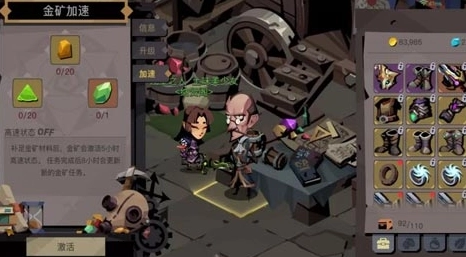 7、要是手头紧没钱升级,又急着用金币,不妨试试金矿加速!提交一定数量的材料(符文工坊对应的是装备)就能激活金矿的高速产出状态。低级材料没处用的话,先用来加速金矿准没错!