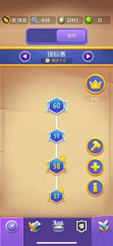 锦标赛每次刷新会出现两个图,只需要打偶数图就可以了。排名前五的玩家能够获得传奇装备,值得尝试争取一下。尽量打到100层,这样能拿到不少材料。锦标赛的币可以用来给全新装备充能,也就是洗天赋。