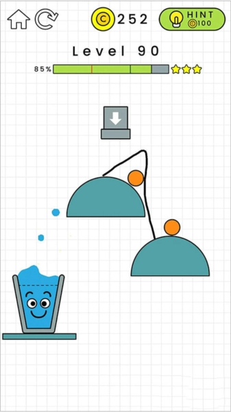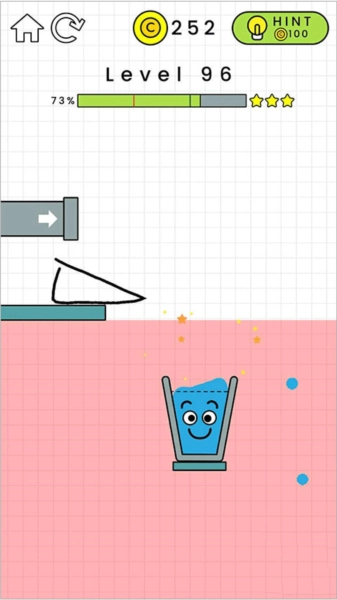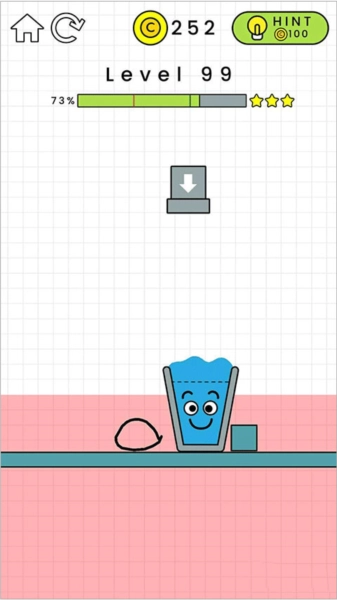 3、丰富多样的关卡,拿起你的画笔,画出一条正确路线,为水珠引路到达杯子里面。