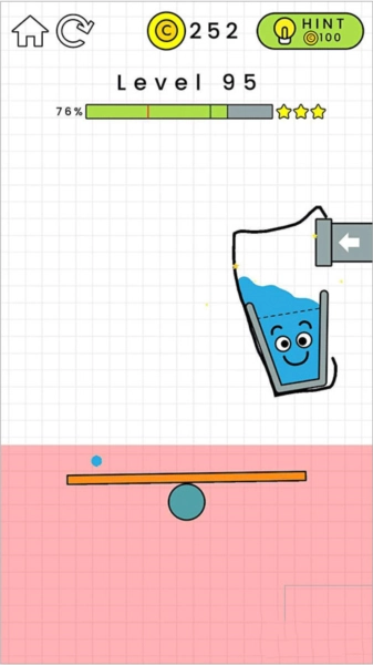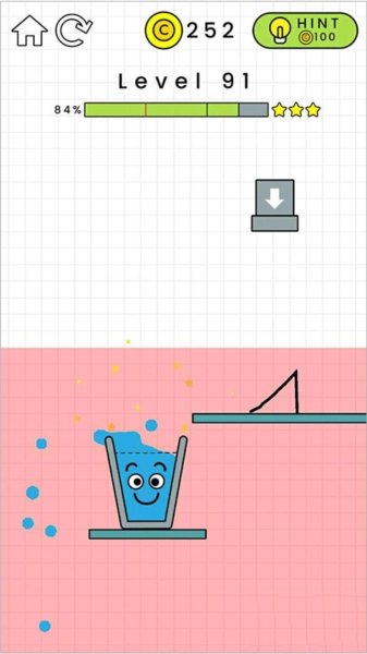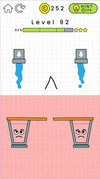 3、游戏采用自由随性的画线玩法,玩家能够依据每一关各异的地形与场景进行画线操作,通过一笔画的方式引导水流注入玻璃杯中,快来挑战看看你能闯到第几关吧!