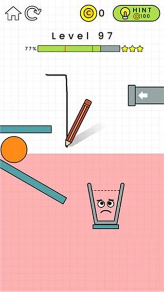 在第99关,你需要画一个物件来让玻璃杯重新直立,这样才能顺利接到水。