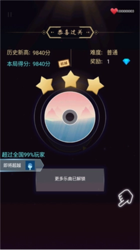 2、这里有丰富多样、风格各异的音乐,既有舒缓的类型,也有劲爆的类型,玩家可以挑选自己喜爱的类型来参与挑战。