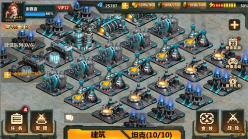 ·日常任务涵盖制造坦克、升级建筑、参与竞技挑战与关卡挑战等内容,完成后可获取各类资源。