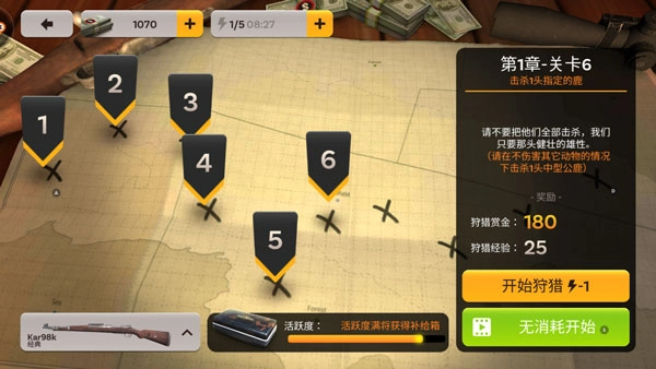 前期的任务关卡都很简单,因为没有攻击性的动物,直接狩猎就行。