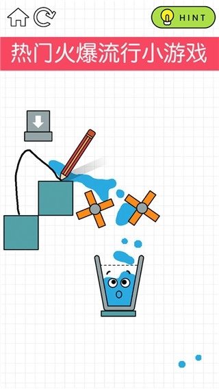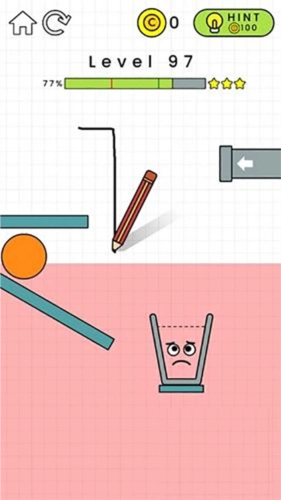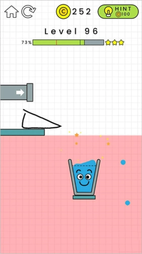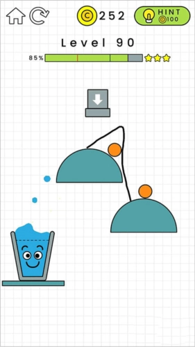 3、关卡设计丰富多样,你只需拿起画笔,为水珠画出一条正确的行进路线,引导它顺利抵达杯子之中。