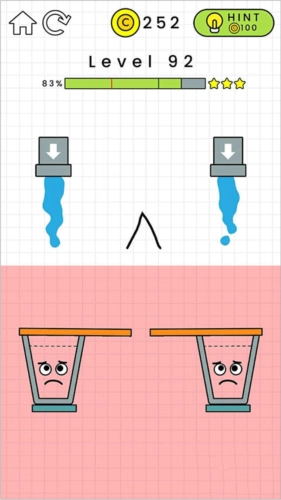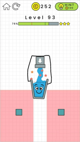 第93关难度不大,借助水管,通过线条让玻璃杯精准接住水流就能通关了。