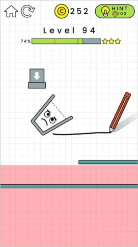 第92关需要在白色方格区域画线,让两个橙色条块掉落,大家可以参考小编的画法。