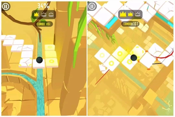 1、操作十分简单,你只需在屏幕上左右滑动,就能引导小球穿过既定的路径。