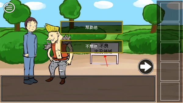 点击左侧的学生,选择“不帮他”,画面会切换到右侧;接着点击右边的史莱姆,就能获得“徽章”;之后画面切回左侧,再对学生使用道具“徽章”。