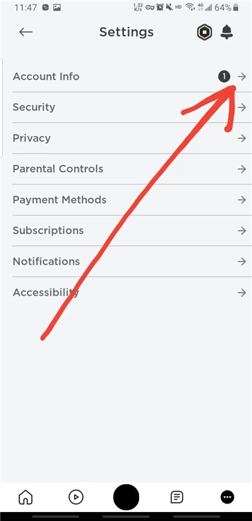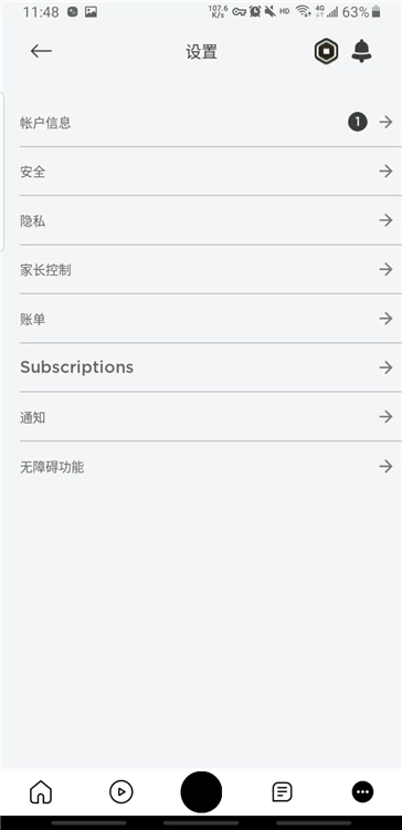 3、点击进入设置界面后,找到并点击第一个“accountinfo(账户信息)”右侧的箭头