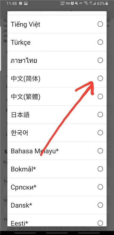 5、进入语言设置界面,向下滚动找到简体中文选项,点击确认修改