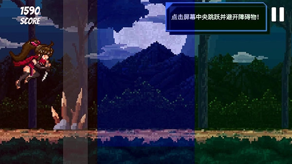 5、遇到障碍物时,我们可以点击屏幕中间进行跳跃以避开障碍物。