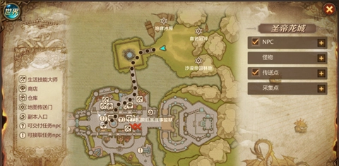 游戏里的主城地图是圣地龙城,这张地图大部分区域属于安全区,仅在主城周边有少量怪物分布。玩家在主城地图中能找到各类NPC,通过他们可以领取任务、参与活动、购置道具、使用仓库以及打造装备等。