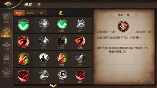 铭文和天赋也是新手玩家比较关心的点,我在这也简单说一下。战士打团本时,铭文选第一排就行,不过遇到部分群伤类型的boss,可能需要把铭文里的“格挡”换成“守护”——毕竟格挡针对的是单体,守护则是群体效果,用我们常说的话来讲,就是给团队套上绿盾,提升整体防御能力。