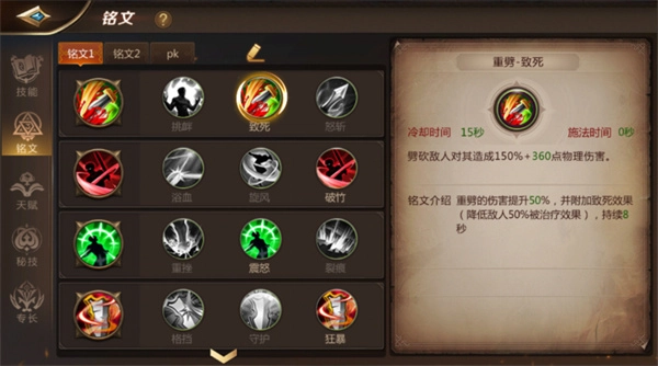 其实就是第三排带个致死技能。用致死技能打敌方奶妈,如果对面没有奶妈,就换成红色的重劈技能。
