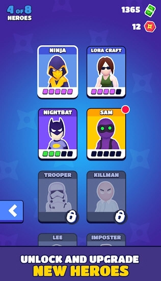 【超强阵容】持续完成任务、获取现金,解锁数十个以流行文化为灵感打造的酷炫角色,提升他们的等级,将其训练成顶尖刺客。在众多动作明星、超级英雄、超级反派与超级狡黠的冒牌货里随心挑选,找到属于你的心仪忍者。