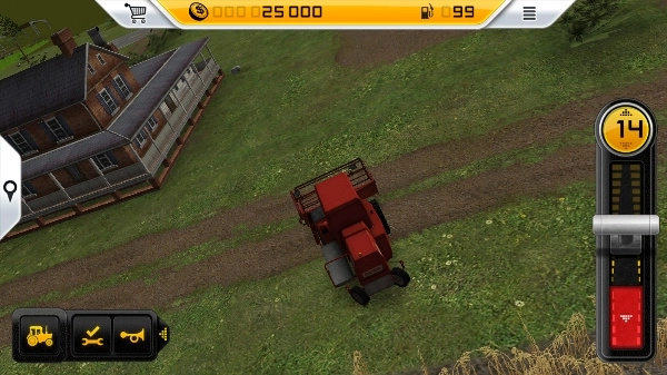4、点击左下角的圆盘能让收割机直线行驶,现在就开启你的收割之旅吧。