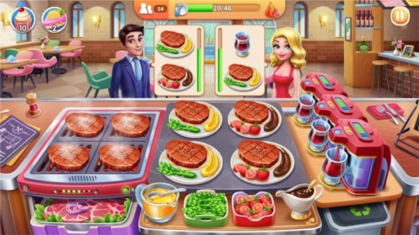 在游戏中,除了体验美食烹饪的乐趣,餐厅管理也是重要环节——玩家可通过装修、清洁和设备维护,让餐厅保持井井有条。操作方面十分简单,只需手指轻点即可完成所有操作。经营过程中,每位顾客的需求各异,根据客人偏好的口感搭配食材、进行烹饪,正是作为“厨师”的最大乐趣。
