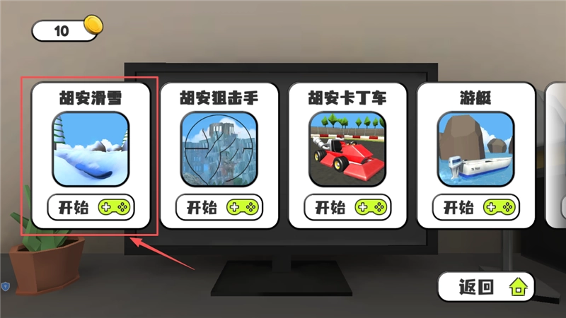2、接下来会进入选择界面,胡安滑雪、卡丁车等项目都在这里,每个项目下方都有绿色的开始按钮,想玩哪个就点击哪个。