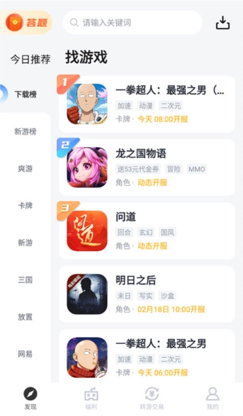 2、要是你有想玩的内容,可以把上方切换到“找”的页面,通过热门榜单或分类进行查看,也能直接在上方搜索关键词。