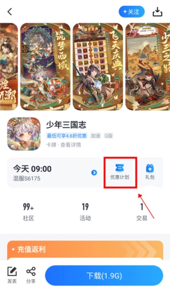 1、挑选你想充值的项目,进入详情页面后,点击“优惠计划(包含充值折扣优惠与代金券)”。