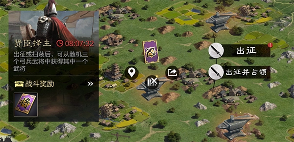 -地图事件:地图会定期刷新“贤臣择主”“战法研习”“名匠献宝”等事件,参与“贤臣择主”可获取特定五星武将,“战法研习”能获得S级战法,“名匠献宝”可得到锻造宝物,这些奖励既可以直接上阵使用,也能在鸣金后兑换时代币。此外,地图还会随机刷新带有稀有奖励(如进阶武将、藏品宝物)的事件,这类稀有奖励对应的时代币价值更高。
