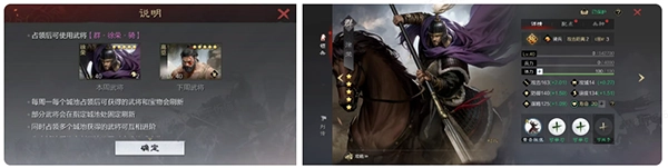 -城池占领:占领城池可获得专属武将、夜明珠、罗绮香囊等宝物,奖励每周一刷新。其中东平有专属武将。